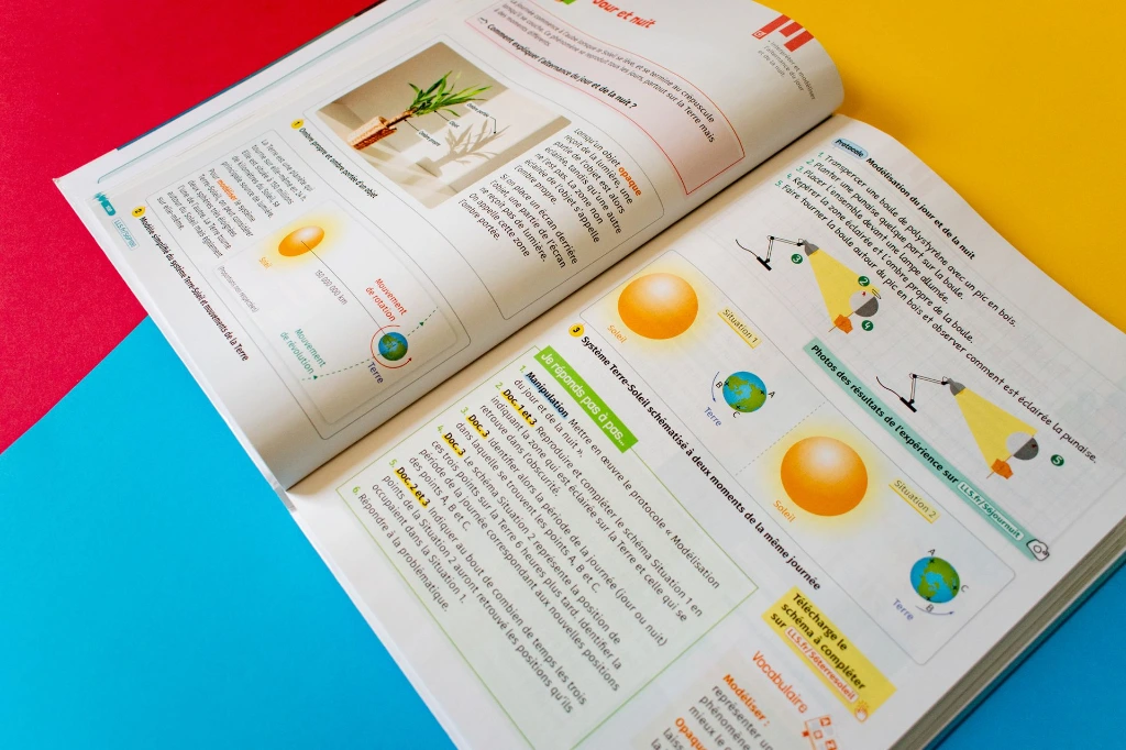 Pour correspondre à un usage par des élèves de 6e, ce projet emploie une nouvelle maquette graphique, remise au goût du jour par rapport aux collections de science éditées les années précédentes. Les pages du manuel se veulent claires, colorées et ludiques.